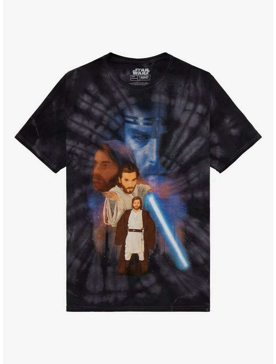 Bring balance to your wardrobe with a little help from Obi-Wan and this spiral tie-dye Star Wars tee! Inspired by the Jedi’s iconic look from Episode II – Attack of the Clones, this tee features various portraits in a multi-exposure graphic on the front of this retro-themed style, making for the perfect look to channel your inner-Jedi.