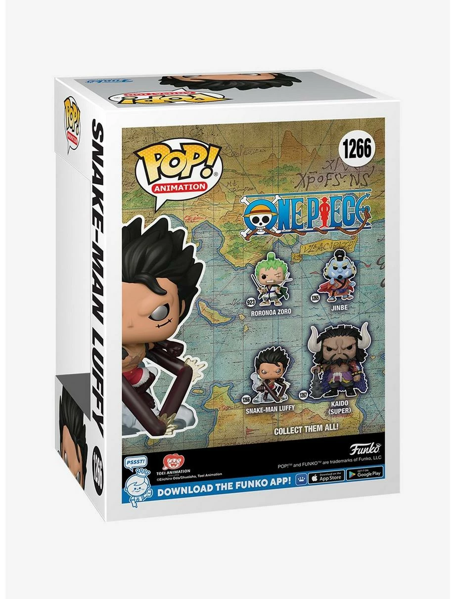 The leader of the Straw Hat Pirates is ready to enter your Funko collection! Seen in his Gear 4 Snake-Man variation from One Piece, Monkey D. Luffy poses ready for a fight in your Pop! display.